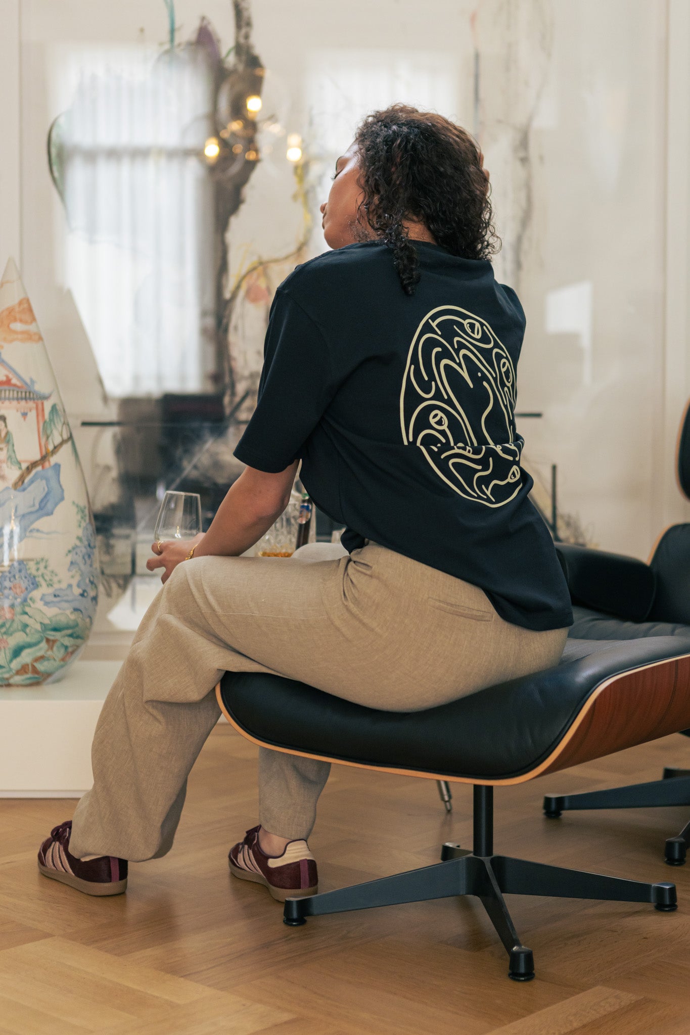 Subtle in the front, statement in the back — this black tee keeps it cool while turning heads wherever you go.
